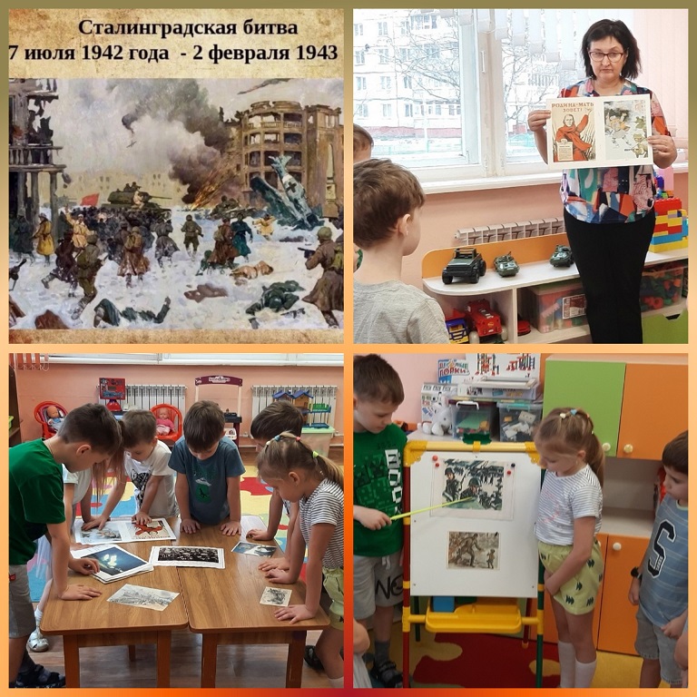 В рамках Года защитника Отечества с воспитанниками подготовительных групп прошло мероприятие «Страница истории — Сталинградская битва» с целью ознакомления детей с историческими событиями Великой Отечественной войны по освобождению Сталинграда от фашистских захватчиков. Ребята узнали об историческом значении Сталинградской битвы и памяти тех грозных лет.