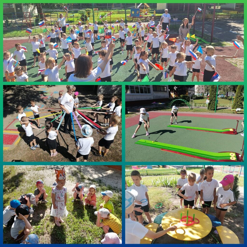 Затем прошел праздничный флешмоб и «Забег дошколят с триколором». Ребята вышли на старт, чтобы пробежать символический забег с российским флагом в руках и поддержать нашу страну.