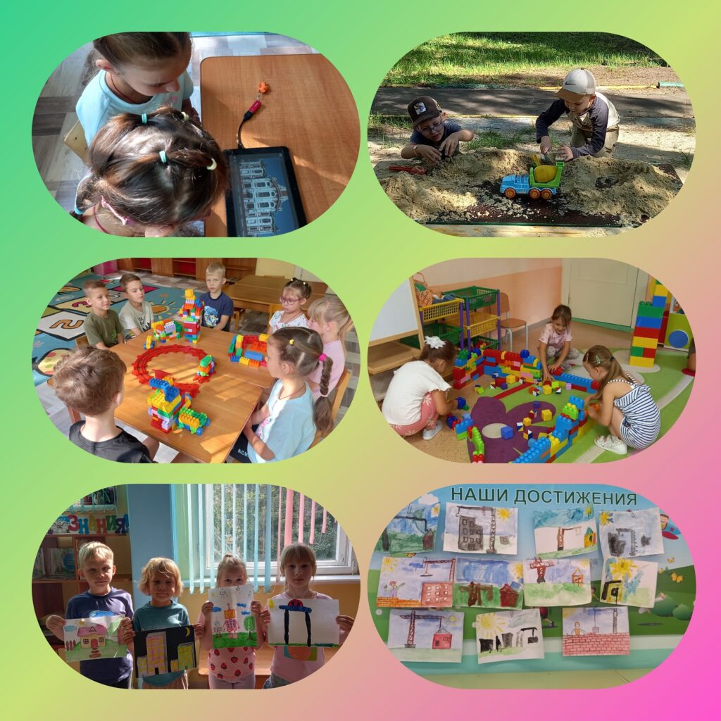 В честь профессионального праздника строителей воспитанники детского сада «Огонек» познакомились с азами проектирования, совершили виртуальную экскурсию, рассмотрели различные архитектурные постройки, а затем, представив себя в роли строителей, нарисовали и построили свой «Город будущего» из конструктора и песка.