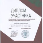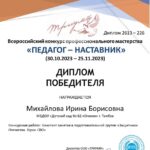 Курсы повышения квалификации «Современные подходы к реализации ФГОС дошкольного образования» 2021 г., «Современные образовательные технологии в реализации дополнительного образования и воспитания обучающихся» 2023 г., «Оказание первой помощи пострадавшим» 2023 г., «Управление дошкольной образовательной организацией в условиях реализации ФОП дошкольного образования» 2024 г., «Возможности ИКОП «Сферум» и VK Мессенджера для решения образовательных задач» 2024 г., «Профессиональное совершенствование педагога ДОО в рамках конкурса «Воспитатель года – 2025»