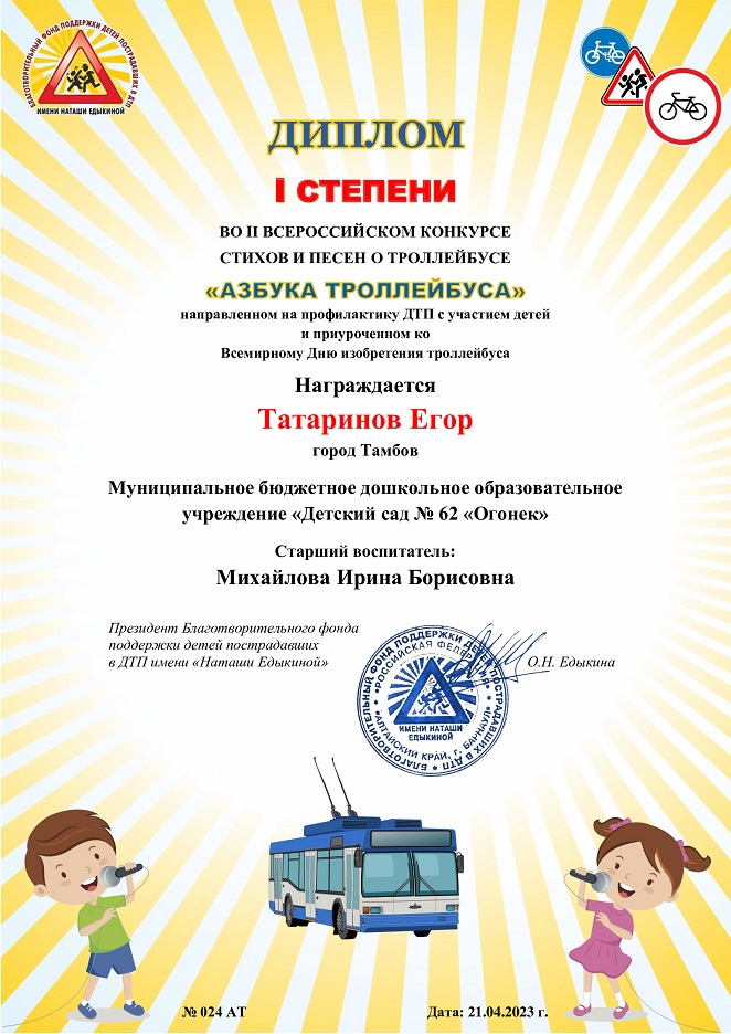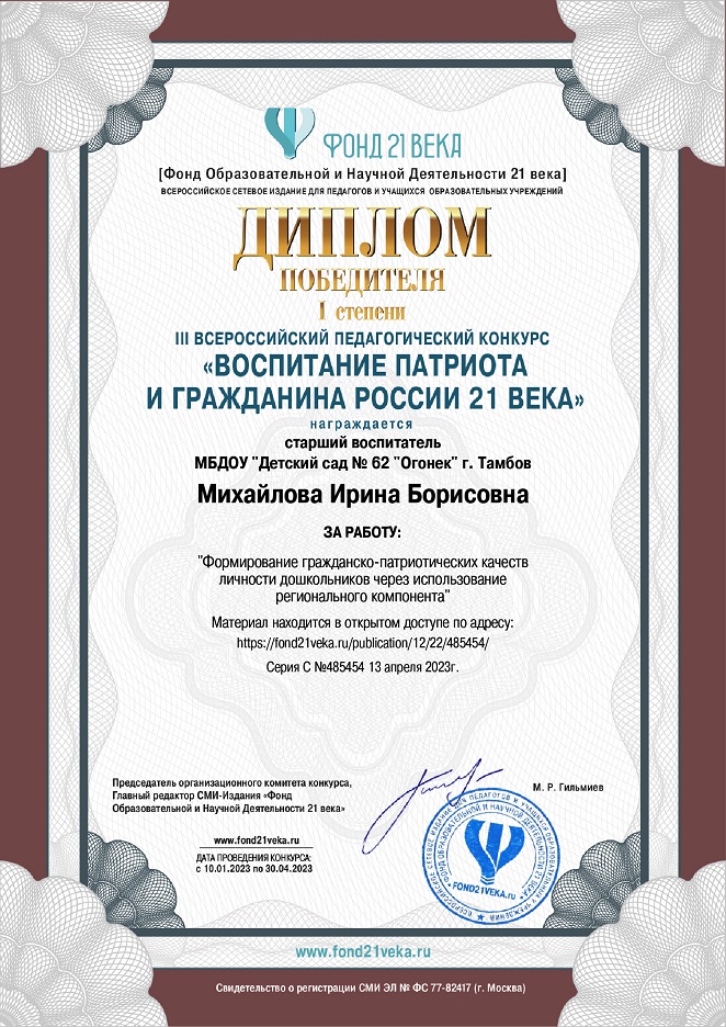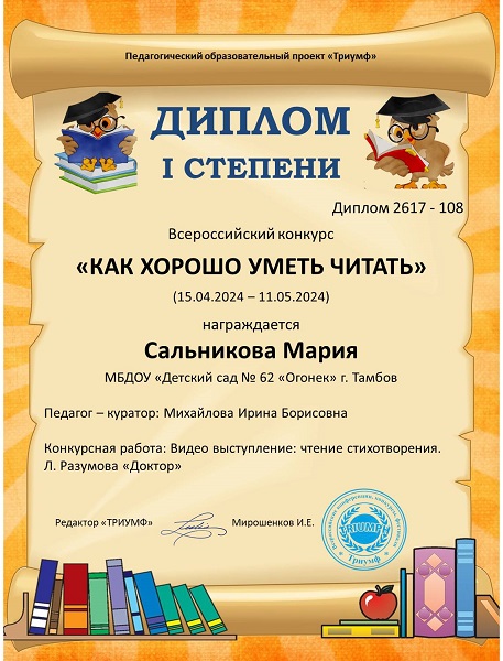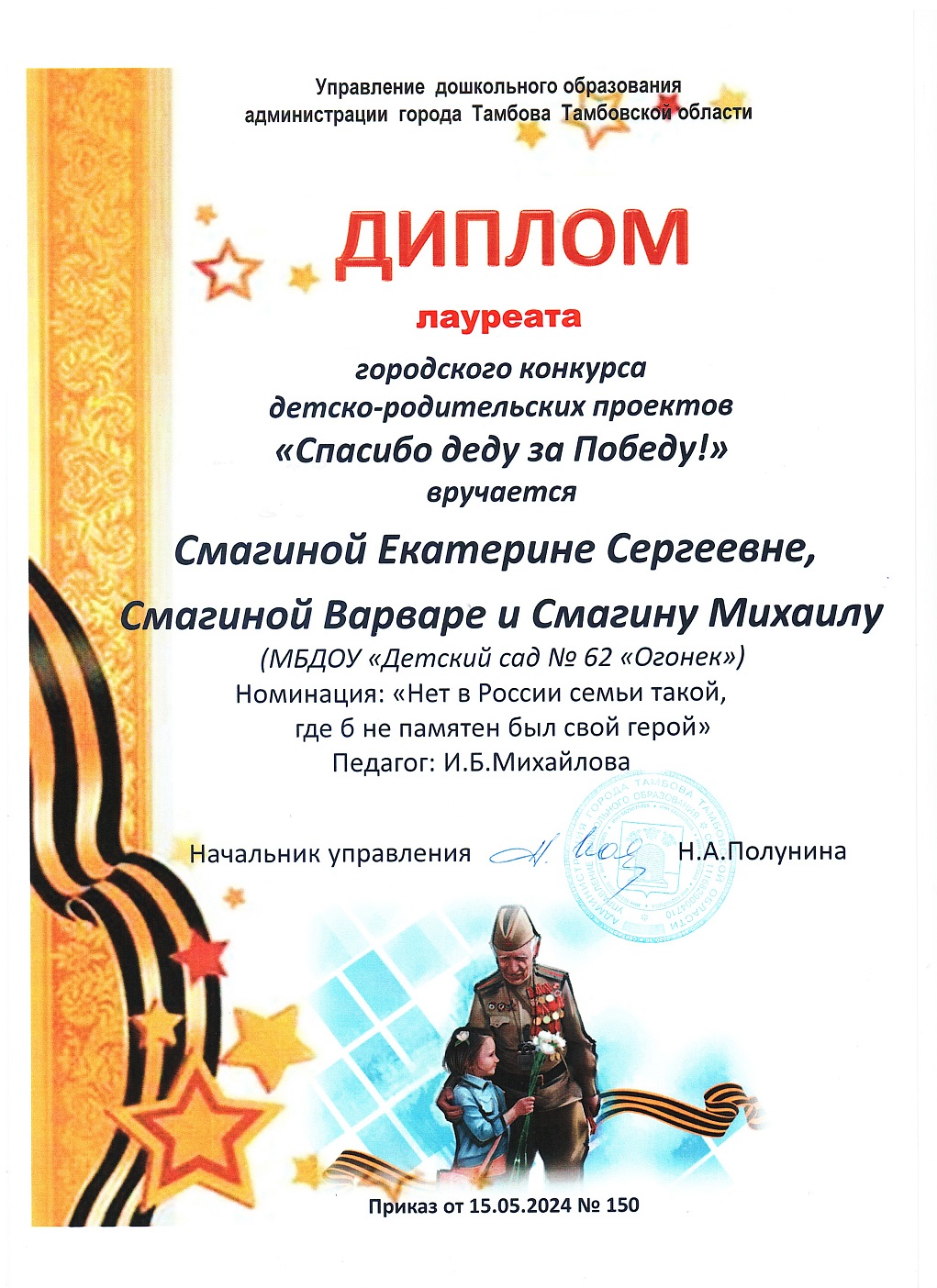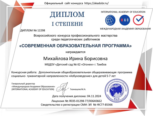 Образование — высшее, Тамбовский государственный педагогический институт, педагогика и методика начального обучения, учитель начальных классов,1991 г.